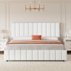 Bed Frame with Drawers, PU Leather Linen Upholstered Platform Bed Frame, Adjustable Height Headboard