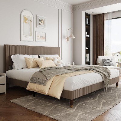 Bed Frame with Headboard, Corduroy Upholstered Platform Bed with Wooden Slats Support
