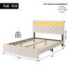 Bed Frame with LED Lights, Upholstered Platform Bed with Headboard, Fast-Charging USB Port, No Box Spring Needed, LED Bed Frame