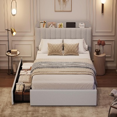 Bed Frame with Storage Headboard, Bed Frame with 2 Drawers