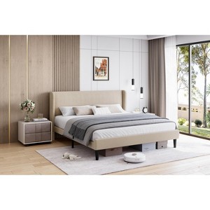 - Elegant Design: Features a sophisticated wingback headboard with soft velvet upholstery in a versatile beige color, adding a touch of luxury to any bedroom decor.