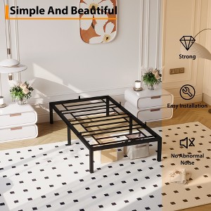 - 【No Box Spring Needed】Experience the ultimate support with our bed frame, featuring a robust steel slat support system. This platform bed frame eliminates sagging mattresses, ensuring you enjoy a secure and comfortable sleep, night after night. Do not require additional foundation or box spring.