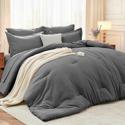 Bed in a Bag 7 Pieces King Size Comforter Set for All Season, Dark Grey