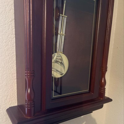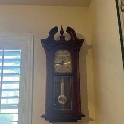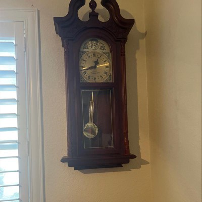 Bedford Clock Collection 38 Inch Chiming Pendulum Wall Clock in Cherry Oak Finish