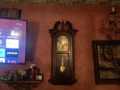 The cabinet is beautiful. The actual sound from the music box inside sounds frail and tin like. Not a full sound like my others. Sounds cheap by comparison. The pendulum was smashed. Couldn’t get a response from the company. Will keep trying. Good purchase for looks minus the crushed pendulum. Clock works great minus the horrible sounds and smashed pendulum.