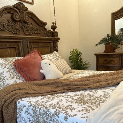 The neutral mocha color of the Bedford floral toile print makes this a versatile quilt set for any bedroom. Paired with a mini-print geometric coordinate in taupe and white, this set will look stunning in any bedroom. 100% cotton pre-washed for softness, it becomes cozier with every wash. Filled with a blend of 80% cotton/20% poly this quilt is light weight yet can be layered for year-round use. Set includes one quilt and two shams for full/queen and king size, one sham for twin size. Machine washable for easy care.