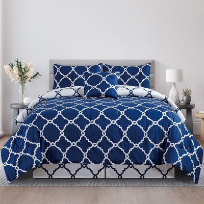 Bedsure Navy King Comforter Set - 7 Pieces Solid Twin Bed in a Bag, Twin Bed Set Navy with Quilted Warm Fluffy Comforters, Sheets, Pillowcase & Sham