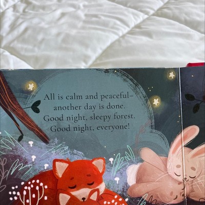 Children can join the young animals in the forest as the day ends and everyone settles down for bed in this gentle rhyme. A bear curls up before falling asleep; a bunny snuggles with her parent as she closes her eyes; a chick chirps and settles into his nest; and a fox wraps her fluffy tail around her. Soon, the forest is quiet, and all animals are asleep. Features touch-and-feel elements throughout.