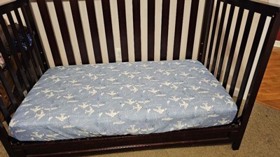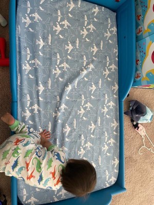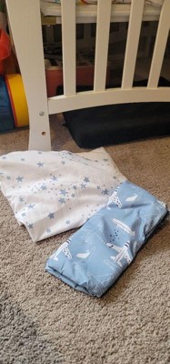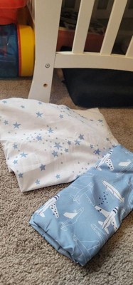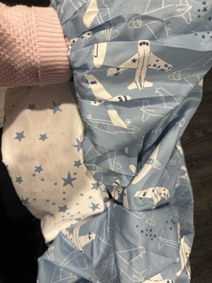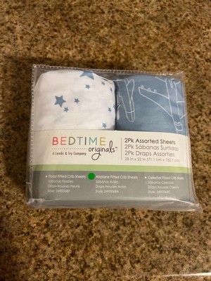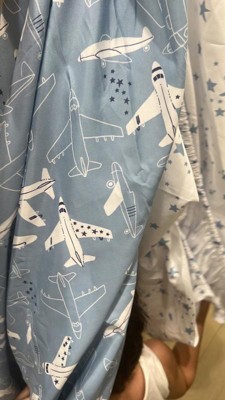 [This review was collected as part of a promotion.] the blue airplane and star fitted crib sheets for my baby's nursery, and I couldn't be happier with my purchase. The design of the sheets is absolutely adorable and adds a lovely touch to the room decor. The quality of the sheets is top-notch. They are made of soft and comfortable fabric that feels gentle against my baby's delicate skin. The sheets fit the crib mattress perfectly, thanks to the elasticized edges that ensure a snug and secure fit. I also appreciate the durability of these sheets. They have been through multiple washes and still look as vibrant and beautiful as the day I bought them. They have maintained their shape and color without any signs of fading or wear. Furthermore, the blue airplane and star pattern is gender-neutral, making it suitable for both boys and girls. It creates a soothing and inviting environment for my little one to sleep peacefully. Overall, I highly recommend the blue airplane and star fitted crib sheets. They are not only stylish and durable but also provide a cozy and safe sleeping space for your little bundle of joy.