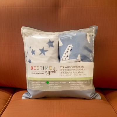 [This review was collected as part of a promotion.] The Bedtime Originals Airplane/Stars Aviation 2-Pack Fitted is a set of two microfiber crib sheets. They are made with a 200 thread count and are designed for toddlers. It fits well in the crib mattress and is soft and comfy. The design is adorable and lovely.