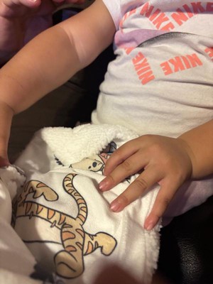 [This review was collected as part of a promotion.] This blanket is soo cute! It’s very thick material, soft and plush on both sides but one side has the fluffier material. It’s a great blanket for cold weather! The design is adorable and very gender neutral which I love! The blanket is large for a baby blanket so it’s perfect size for mom and baby cuddles!