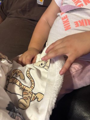 [This review was collected as part of a promotion.] This winni the pooh & friends baby blanket is so plush and soft! It is perfect to throw over the baby if there is a breeze or to place on a surface and lay baby on top. It is a bit thick so I wouldn’t leave baby on tummy on it unattended. It could be a bit bigger but still a nice size and great to have in the blanket collection!