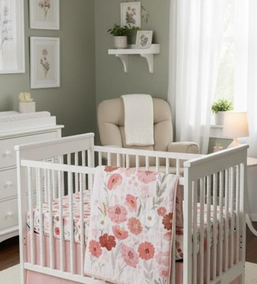Bedtime Originals Flower Power 3-Piece Floral Baby Nursery Crib Bedding Set