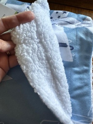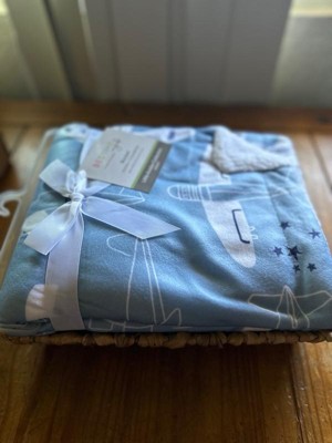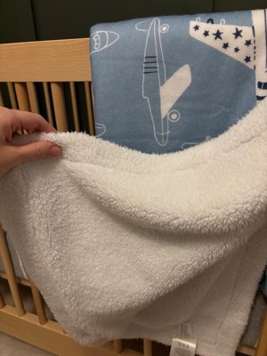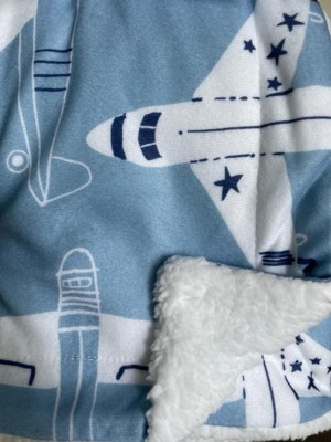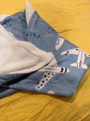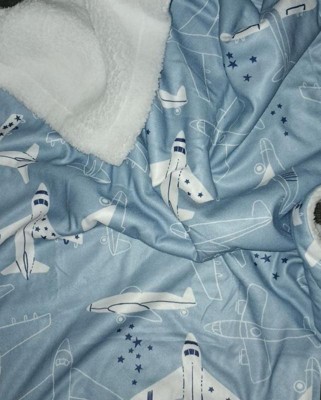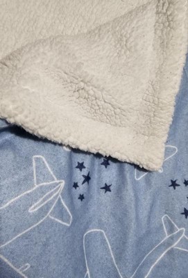 [This review was collected as part of a promotion.] This is an adorable blanket that is very soft! It’s perfect for the stroller or car seat because it’s not too large. The airplane pattern is really cute! And the Sherpa side is very soft, although it changes texture significantly after washing. This also creates an incredible amount of static from the dryer and attracts other items to stick to it, so I will be washing it separately moving forward!