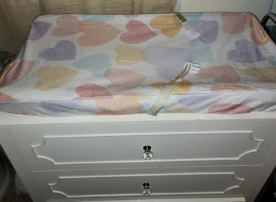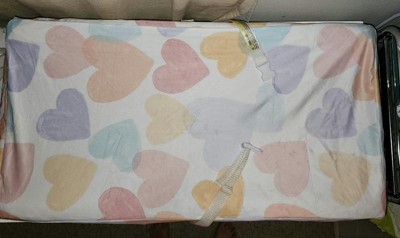 [This review was collected as part of a promotion.] The rainbow hearts changing pad cover is very soft and has very beautiful pastel hearts printed on it. The cover itself is for a standard changing pad size. Unfortunately, it was a little bit for my changing pad since I have the crib and changing pad combo. Regardless it was still usable and I will keep it as a backup in case the other cover gets dirty.