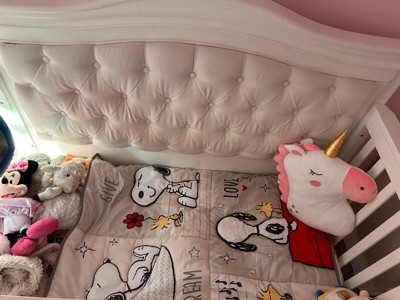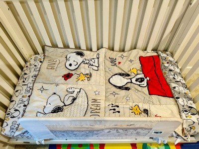 [This review was collected as part of a promotion.] This is the cutest crib set I have seen from the snoopy crib set collection. It’s super cute , and has cute designs. I love how it fits on our crib , the quilt looks very comfortable I would recommend to all my snoopy lovers