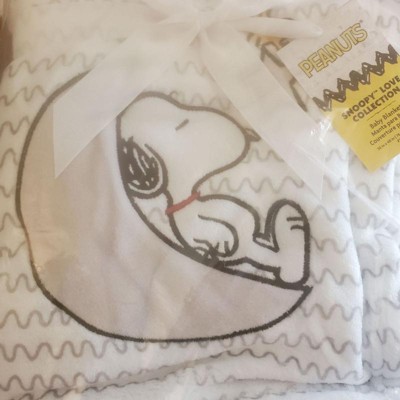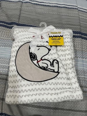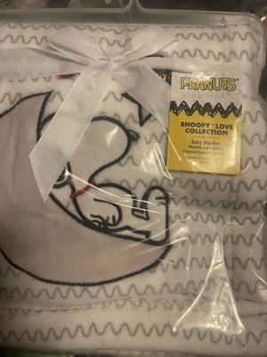 Bedtime Originals Snoopy Love Soft White/Taupe Fleece Baby Blanket w/ Applique