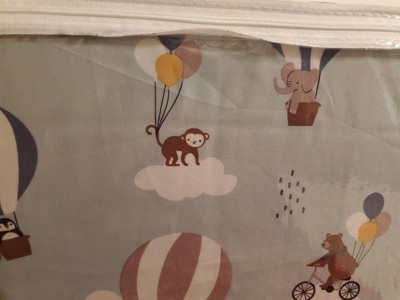 [This review was collected as part of a promotion.] This bedding set is so cute! I love the whimsical hot air balloons and is perfect for my son’s room. Love that it comes with the quilt, sheet, and mattress cover. He is always pointing to all the bears on the print.