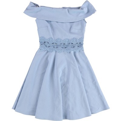 B. DARLIN Womens Ruffled Skater Floral Fit & Flare Dress, brightblue, 5/6