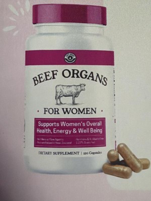 Beef Organ Supplement for Women, Beef Liver, Kidney, Heart & Uterus Tissue, Supports Women's Overall Energy and Health, Left Coast Performance, 120ct