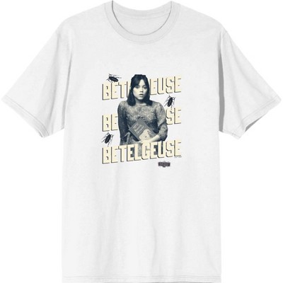 Immerse yourself in the eerie allure of Beetlejuice Beetlejuice with this apparel featuring a black and white image of Astrid amidst beetles and vibrant yellow letters repeating the name "Betelgeuse," three times. Made from premium materials, this apparel is as durable as it is stylish, perfect for any fan looking to express their love for the movie. Machine wash it on cold with like colors and tumble dry on low heat for hassle-free care.