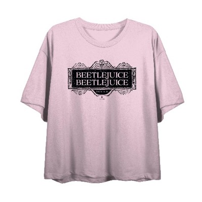 Beetlejuice Beetlejuice Black Sign Logo Women's Vivid White Crop Tee-3XL
