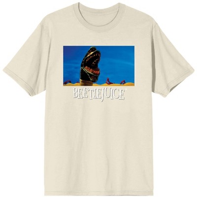 Unleash the whimsically macabre world of Beetlejuice with apparel that showcases the iconic sandworms circling a mysterious white door in the desert. This eye-catching apparel combines the eerie with the extraordinary, inviting you into a realm where the supernatural and the stylish meet. Made from premium materials for comfort and durability, it's a wardrobe staple for fans. Easy machine wash and tumble dry care ensures the striking design remains vibrant, wash after wash.