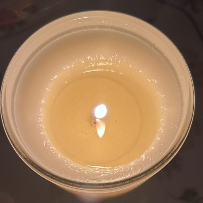 I have been burning this for a while before I could smell anything. About an hour afterwards, I could start to smell it and it smelled pretty nice. It’s been burning for about four hours and it is tunneling. It actually looks like it’s a votive inside another candle as you can see from the picture. I had cut the wick, hoping that might help with the volcano. I’ve even rotated. The candle in the outside doesn’t seem to burn. So the scent is nice. I don’t know how long it’s gonna last because of the way it’s burning. For $10 yeah I can deal with it. Would I buy another one probably not.
