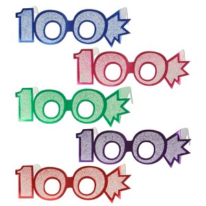Glittered Foil Eyeglasses. Includes 25 glittered foil eyeglasses per package. These "100" glittered eyeglasses come in assorted colors of blue, cerise, green, purple and red with silver glitter and are fun to wear!.. Perfect for enhancing any celebration or event. Designed for high-quality, easy use, this product adds instant fun and color to your gathering. Whether for holidays, birthdays, or special events, it provides a festive atmosphere!.