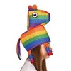 Bright and Colorful: This fabric pinata hat features vibrant rainbow stripes, adding a fun and festive touch to any celebration.