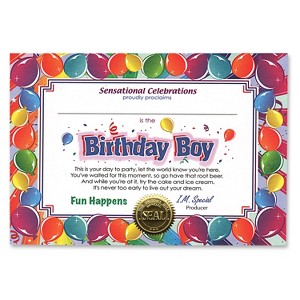 - Contains (6/Pkg) Birthday Boy Certificate, 5" x 7",