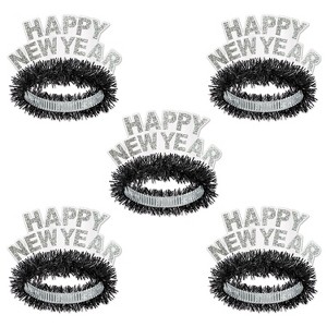 and White Legacy Tiara. The white board stock Happy New Year tiara has silver glitter and black tissue fringe that is covering the foil headband. It is one size fits most.. Perfect for enhancing any celebration or event. Designed for high-quality, easy use, this product adds instant fun and color to your gathering. Whether for holidays, birthdays, or special events, it provides a festive atmosphere!.