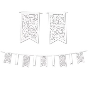 - Contains (1/Pkg) Die-Cut Mr & Mrs Pennant Banner, 7.5" x 12',
