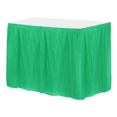 9' x 30" artificial natural looking raffia table skirt for Luau parties trimmed with beautiful poly silk flowers.
