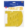 Celebrate a milestone birthday with this FINALLY 19 BIRTHDAY foil streamer from Beistle. These decorative metallic party accessories are printed in gold, crafted to spell out "Finally 19" (Printed on one side). Each birthday streamer measures 7.5 inches tall and spans 3 feet in width when assembled, creating an impressive statement piece for your celebration. Assembly is required to string letters and numbers onto the provided white ribbons. Make a statement and commemorate this significant eighteenth milestone with our lively "Finally 19" streamers, ensuring a birthday bash to remember. *** Party Planning Made Fun *** From New Year's Eve Parties, Halloween and Fall Festivities, Bachelorette Parties, Birthday Bashes, Graduation Get-Togethers, Baby Showers, Pool Parties, and more, our Novelty Items and Party Supplies are sure to add a pop of color and extra spice to any occasion. Celebrating life's events, one party at a time. Since 1900 our mission has remained the same: Create products using the finest materials and to the highest standards. Our customers, products, and employees make us who we are. We are The Beistle Company!