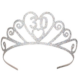 Metal "30" Tiara. This tiara is a must for the birthday person turning 30! The tiara is made of metal covered in silver glitter.. Perfect for enhancing any celebration or event. Designed for high-quality, easy use, this product adds instant fun and color to your gathering. Whether for holidays, birthdays, or special events, it provides a festive atmosphere!.