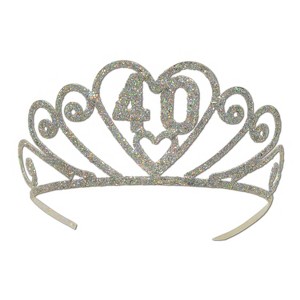 Metal "40" Tiara . This tiara is a must for the birthday person turning 40! The tiara is made of metal covered in silver glitter.. Perfect for enhancing any celebration or event. Designed for high-quality, easy use, this product adds instant fun and color to your gathering. Whether for holidays, birthdays, or special events, it provides a festive atmosphere!.
