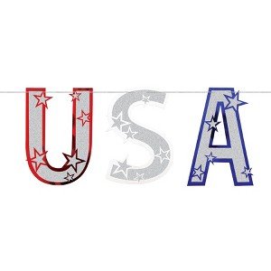 - Contains (2/Pkg) Glittered USA Streamer, 15" x 4' 6",