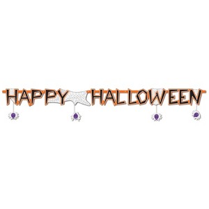This Happy Halloween Streamer has orange and black letters with spider webs throughout the letters. It is eyeletted with purple spider danglers, made of cardstock and measures 10 inches high by 6 feet wide. *** Party Planning Made Fun *** From New Year's Eve Parties, Halloween and Fall Festivities, Bachelorette Parties, Birthday Bashes, Graduation Get-Togethers, Baby Showers, Pool Parties, and more, our Novelty Items and Party Supplies are sure to add a pop of color and extra spice to any occasion. Celebrating life's events, one party at a time. Since 1900 our mission has remained the same: Create products using the finest materials and to the highest standards. Our customers, products, and employees make us who we are. We are The Beistle Company!