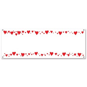 - Contains (2/Pkg) Hearts Sign Banner, 5' x 21",