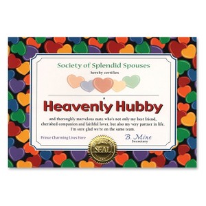 - Contains (6/Pkg) Heavenly Hubby Certificate, 5" x 7",