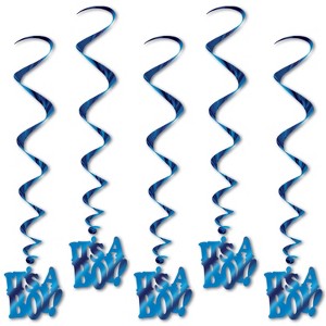 It's a Boy Whirls. Each whirl is a blue metallic spiral with a matching metallic "It's A Boy!" icon at the bottom . The whirls measure 3 feet long and would make great decorations for a baby shower! *** Party Planning Made Fun *** From New Year's Eve Parties, Halloween and Fall Festivities, Bachelorette Parties, Birthday Bashes, Graduation Get-Togethers, Baby Showers, Pool Parties, and more, our Novelty Items and Party Supplies are sure to add a pop of color and extra spice to any occasion. Celebrating life's events, one party at a time. Since 1900 our mission has remained the same: Create products using the finest materials and to the highest standards. Our customers, products, and employees make us who we are. We are The Beistle Company!