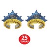 - Contains 25 printed foil hi-hats, 25 printed foil fringed tiaras, and 50 printed foil horns measuring 9".