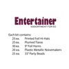 Years Eve Assortment for 50 PeopleProudly Made in the USAGet ready to shine and make a bold statement as you step into the new year! These assorted colored party favors and accessories come in several colors with dark accents that are sure to go perfectly with your NYE party decor! The assortment includes supplies for 50 people and includes: 25 foil printed top hats, 25 foil printed glittered tiaras with black plume feathers, 30 foil horns, 20 pieces metallic noisemakers and 25 party bead necklaces. Note: Assortment components may vary. With our assorted color metallic accessories, your New Year's Eve celebration will be a brilliant and unforgettable start to the year ahead!. Perfect for enhancing any celebration or event. Designed for high-quality, easy use, this product adds instant fun and color to your gathering. Whether for holidays, birthdays, or special events, it provides a festive atmosphere!....