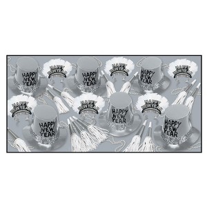 Beistle New Year Platinum Assortment for 25 guests includes 62 items Silver