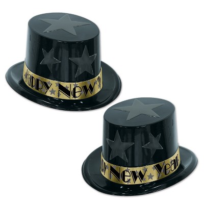 Ring in the New Year in style with these fabulous New Year Hats! Designed to fit most head sizes, these hats are perfect for group celebrations and festive gatherings. Made of durable cardstock paper, these top hats are built to withstand your New Year's celebrations.