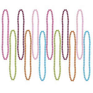 These Party Beads are small and round. These necklaces are made of 7 millimeter round beads. They come in assorted solid color strands of cerise, light green, maroon, orange, pink and turquoise. The necklaces are 33 Inch long. Perfect for enhancing any celebration or event. Designed for high-quality, easy use, this product adds instant fun and color to your gathering. Whether for holidays, birthdays, or special events, it provides a festive atmosphere!.