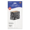 This black and silver table skirting is made of 2,ply metallic plastic strands. It measures 30 inches long by 14 feet wide. Easy to use , tape it around a table to decorate for any event.. Perfect for enhancing any celebration or event. Designed for high-quality, easy use, this product adds instant fun and color to your gathering. Whether for holidays, birthdays, or special events, it provides a festive atmosphere!.