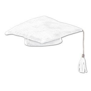 Graduate Cap. This white plush graduate cap is made of soft plush foam with a fringed tassel. The cap is made for a medium head size and measures 10 Inch. Wear this fun hat to any graduation party or event!.. Perfect for enhancing any celebration or event. Designed for high-quality, easy use, this product adds instant fun and color to your gathering. Whether for holidays, birthdays, or special events, it provides a festive atmosphere!.
