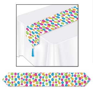 The Printed Hibiscus Table Runner is white with assorted color printed hibiscus flowers. Both ends are tapered with tassels attached. The table runner is made of board stock and measures 11 Inch wide by 6 feet long. Decorate tables with this pretty table runner for a luau party!.. Perfect for enhancing any celebration or event. Designed for high-quality, easy use, this product adds instant fun and color to your gathering. Whether for holidays, birthdays, or special events, it provides a festive atmosphere!.